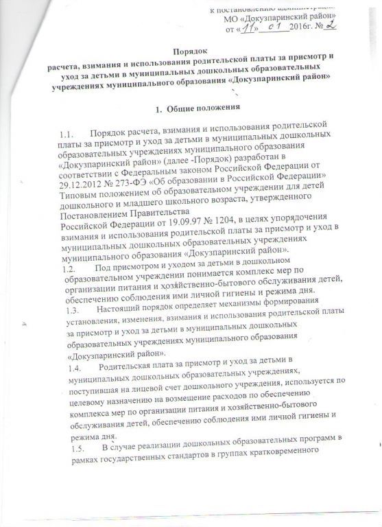 Документ об установлении размера платы, взимаемой с родителей (законных представителей)